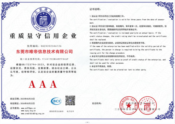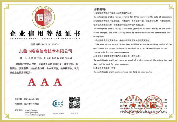 Standardowy:Enterprise credit rating certificate